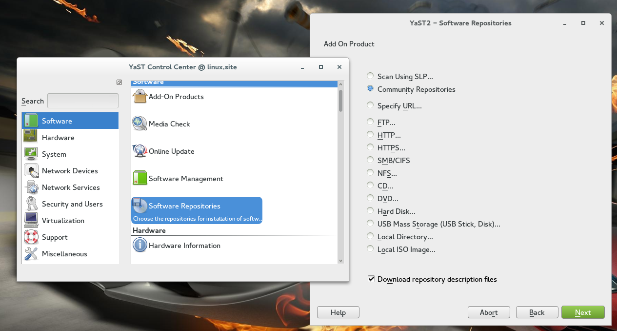 Now here is the fun part. Open Suse have its partner and so does Ubuntu. While Ubuntu only allow a limited number of Apps in its 3rd party repository, OpenSuse allow a whole bunch of them, and all are listed in its community repository. Its repository manager is indeed very user friendly, unlike the one you have seen in Ubuntu. Just click on the “Software Repository” on YAST , click Add and Choose Community Repository and thousands of Apps will be available at your fingertips.